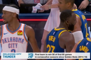 挑落你復刻你!雷霆連續兩個賽季前65場攬50勝 比肩14-18賽季勇士
