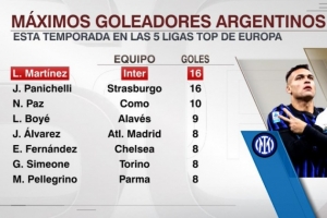 本賽季五大聯賽阿根廷球員射手榜:勞塔羅、帕尼切利16球居首
