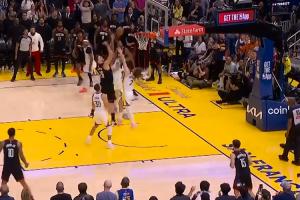 最后時(shí)刻,勇士未喊暫停,庫里持球推進(jìn)到前場(chǎng),擋拆后接變向回拉接撤步強(qiáng)拔三分球,無奈彈筐而出。梅爾頓空中補(bǔ)籃打進(jìn)但是超時(shí)無效,全場(chǎng)比賽結(jié)束。