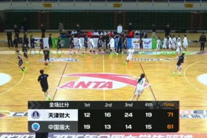 末節決戰,李依坤上來帶領中國海大咬住比分,隨后中國海大連續失誤,陳雨欣繼續內線取分,夏榮三分再中,天津財大9-0再次領先到雙位數領先,張榮荷雖然三罰全中再追分,但時間所剩無幾,最終天津財大71-61力克中國海大。