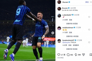 他也在賽后通過社媒曬出自己和勞塔羅的慶祝合照,并配文:“藍黑人生。”