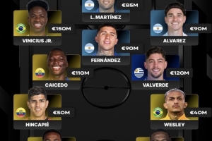 南美球員身價(jià)最貴陣:總身價(jià)8.97億歐元