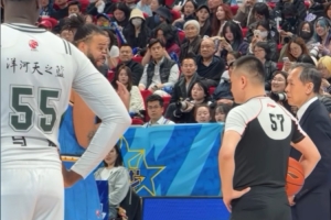 首節末段,場上出現了一個小插曲,麥基剛登場一回合,比賽就被裁判叫停,原因是麥基佩戴的牙套不合規定,最終許利民不得不用周琦將麥基換下。