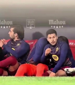 體育資訊04月07日訊 西甲第30輪,巴薩2-1擊敗馬競的比賽中,有攝像頭拍到了替補席上的什琴斯尼讓小將巴德吉打掩護,自己側過身去吃了點什么東西。