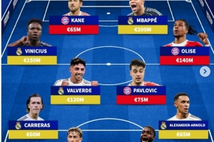 體育資訊4月7日訊 北京時間明天凌晨,皇馬將在歐冠1/4決賽首回合比賽中主場對陣拜仁。德國轉(zhuǎn)會市場列出了皇馬+拜仁陣容。