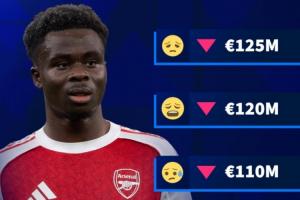 體育資訊03月08日訊 德轉(zhuǎn)明天將更新英超球員身價(jià),它們今天預(yù)熱了薩卡身價(jià)將在更新后下跌,最低將跌至1億歐。