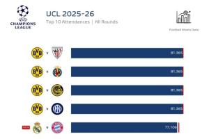 最高81365人!歐冠上座榜:多特4場滿座并列榜首,皇馬vs拜仁第五