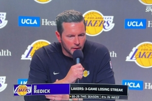體育資訊4月10日訊 湖人客場挑戰(zhàn)勇士,賽前主教練雷迪克接受采訪,談到球隊(duì)近期的三連敗。