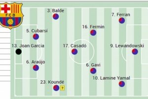 鋒線上最大的疑問是亞馬爾是否會(huì)出場(chǎng),原則上費(fèi)蘭·托雷斯將首發(fā)出戰(zhàn)此役,萊萬則可能繼續(xù)首發(fā),拉什福德可能會(huì)休息,如果弗里克能夠說服亞馬爾輪休,魯尼·巴德吉將出任右邊鋒。