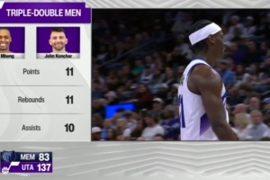 刷爽了!爵士貝茲·姆本和康查爾同時(shí)達(dá)成三雙 后者連續(xù)兩場(chǎng)三雙