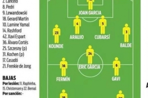 每體預(yù)測巴薩首發(fā):巴德吉、加維出戰(zhàn),佩德里、亞馬爾替補(bǔ)
