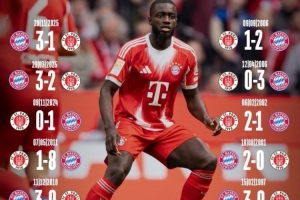 拜仁在最近10次同圣保利的交鋒取得了9勝1負(fù),共計(jì)狂轟29球,丟了7球。