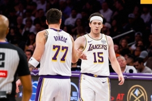 賽后,湖人發布本場贏球海報,封面為東契奇和里夫斯擊掌瞬間。