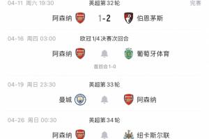 體育資訊04月11日訊 阿森納1-2不敵伯恩茅斯,在多賽2場的情況下領先曼城9分!