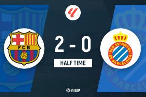 體育資訊4月12日訊 北京時(shí)間4月12日00:30,西甲第31輪巴塞羅那迎戰(zhàn)西班牙人的比賽在諾坎普球場(chǎng)進(jìn)行,上半場(chǎng)亞馬爾助攻費(fèi)蘭頭球破門閃擊得手,隨后亞馬爾再度助攻費(fèi)蘭推射破門擴(kuò)大比分,德米特洛維奇獻(xiàn)精彩撲救,半場(chǎng)結(jié)束,巴薩2-0西班牙人。