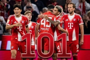 數據統計顯示,拜仁本賽季德甲已經打進101球,追平了自己保持的德甲單賽季進球紀錄(71-72賽季)。
