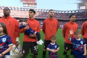 在今天凌晨進行的第32輪意甲聯賽,米蘭主場0-3負于烏迪內斯。賽前兩隊入場時,圣西羅球場的氣氛很熱烈,而巴爾泰薩吉身邊的小球童被這種氣氛嚇壞了,并且不敢走進球場。