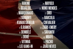 前鋒:7-克瓦拉茨赫利亞、9-貢薩洛·拉莫斯、10-登貝萊、14-杜埃、29-巴爾科拉、49-姆巴耶