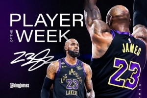 體育資訊4月14日訊 今日,NBA官方宣布常規賽第25周周最佳球員,湖人球星詹姆斯當選西部周最佳球員。
