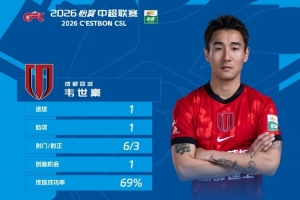 中超官方:韋世豪當選第5輪最佳球員,一傳一射導演蓉城絕殺國安