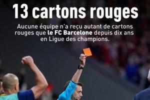 體育資訊04月15日訊 隊報談到,過去十年中,沒有哪支球隊在歐冠聯賽中獲得的紅牌數量比巴薩更多:總共13張紅牌,其中6張是直接紅牌。