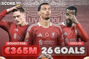 利物浦總共花費3.65億歐引進維爾茨、埃基蒂克、伊薩克,三人本賽季總共打入26球,只比迪亞斯多攻入3球。