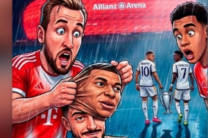 皇馬舊將何塞盧轉(zhuǎn)發(fā)趣味賽前海報,內(nèi)容為拜仁綁架了姆巴佩,但揭開面具發(fā)現(xiàn)是何塞盧,而姆巴佩和維尼修斯帶走了歐冠獎杯。何塞盧為海報配上了笑哭的表情符號。