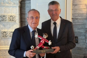 體育資訊4月15日訊 皇馬官方曬照,主席弗洛倫蒂諾與拜仁主席海納會面。