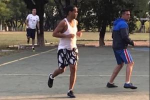 他在獄中參與五人制足球賽,和獄友、獄警同場競技。