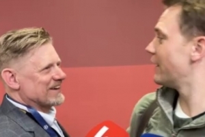體育資訊4月16日訊 歐冠1/4決賽次回合,拜仁vs皇馬,第1分鐘,諾伊爾出球直接傳給居萊爾,后者吊射空門得手,不過(guò)拜仁最終成功晉級(jí)。賽后,舒梅切爾在混合采訪區(qū)與諾伊爾開(kāi)起了玩笑。