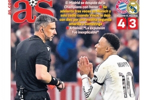 西班牙媒體《阿斯報(bào)》最新封面出爐,主標(biāo)題為“直到裁判決定一切”。
