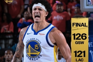 體育資訊4月16日訊 附加賽勇士客場126-121逆轉快船,將和太陽爭奪西部第八。