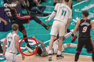 啊這……黃蜂本季常規(guī)賽客戰(zhàn)熱火 三球倒地后也抓過阿德巴約小腿