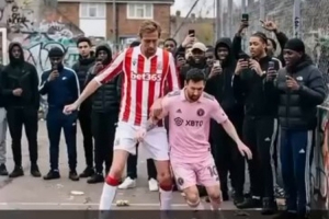 克勞奇社媒曬出AI視頻,內(nèi)容為他在街頭足球中搶斷梅西并破門,然后做出標(biāo)志性的機(jī)械舞慶祝動(dòng)作。