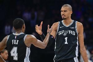 此役,文班亞馬出戰36分34秒,20投11中,三分15中8,罰球12中9,砍下39分11籃板3助攻1搶斷2蓋帽;??怂钩鰬?5分鐘,投籃14中11,三分球3中2,罰球3中1,拿下25分3籃板9助攻1搶斷。