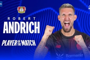 打進(jìn)本隊(duì)唯一進(jìn)球!安德里希當(dāng)選勒沃庫(kù)森1-1阿森納一役全場(chǎng)最佳