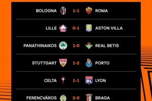 歐聯杯1/8決賽首回合賽果:五大聯賽球隊僅維拉取勝