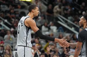 此役,文班出戰(zhàn)31分鐘,24中13,三分10中5,罰球2中1砍下32分12籃板8助攻2搶斷4蓋帽的全面數(shù)據(jù),正負(fù)值+6。