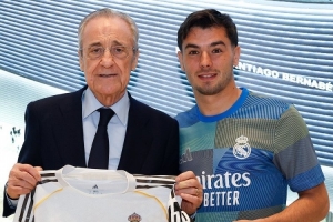 迪亞斯為皇馬出戰150場比賽,弗洛倫蒂諾向他頒發紀念球衣