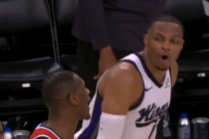 比賽最后時刻,威少與快船后衛(wèi)克里斯·鄧恩爆發(fā)口角,威少怒噴道:“你TM就是個無名小卒、無名小卒。你是誰?來試試?你根本不敢。滾回去吧(此時鄧恩被換下),你TM在說什么?”