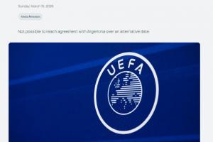 體育資訊03月15日訊 歐足聯官方宣布,原定于本月3月28日舉行的2026歐美杯比賽取消。