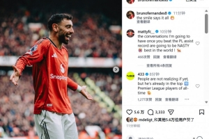本場比賽B費助攻雙響,賽后他也在個人社媒曬出本場慶祝照,配文寫道:“微笑說明了一切!”